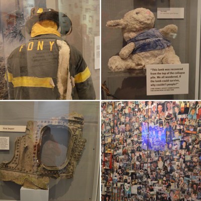 Partes de los aviones, un camión de bomberos casi completo, ropas rasgadas de los rescatistas, juguetes de niños que perdieron la vida, y hasta pasabordos de los viajeros que chocaron contra las estructuras, hacen parte de esta muestra que a mí la verdad me pareció un poco macabra y llena de morbo.